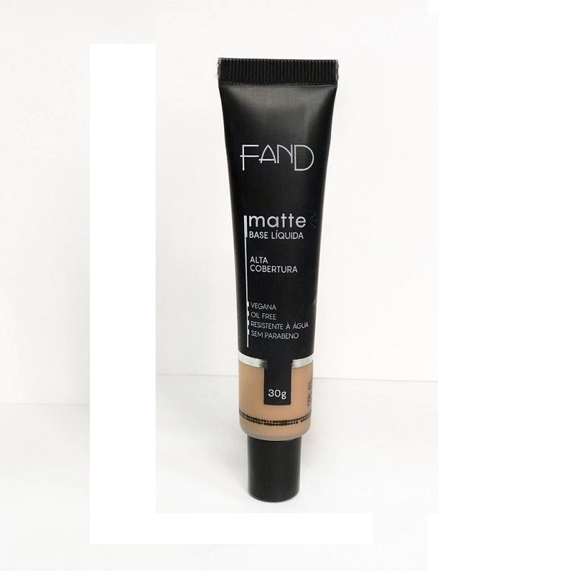A Base Líquida Matte Fand Makeup oferece alta cobertura, acabamento matte, com toque seco e além de tudo, ainda é resistente a água. Sua fórmula é vegana, livre de óleos e parabenos.